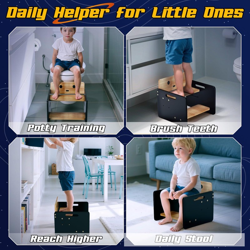 - Adjustable Height for Growing Kids – With a two-step adjustable platform, this toddler step stool grows right along with your child. Set it higher for toddlers just starting out, then lower it as they get taller—perfect from potty training to preschool. No need to replace as they grow; this stool’s got them covered for years