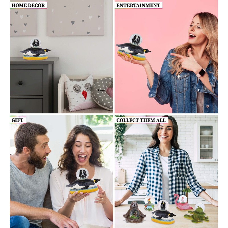 - THE PENGUIN SNOW GLOBE COMES WITH A UNIQUE DESIGN YOU LOVE – Show your love for wildlife animals with a sparkly fun Penguin tabletop decor. The animal snow globe figurine is shaped in cute penguin design with two smaller penguins on its back inside the water globe. Shake the globe to see the sparkly snow confetti fall on top the penguins and enjoy the show! Our hand painted rainbow Penguin Globe is a unique novelty collectible home decor.