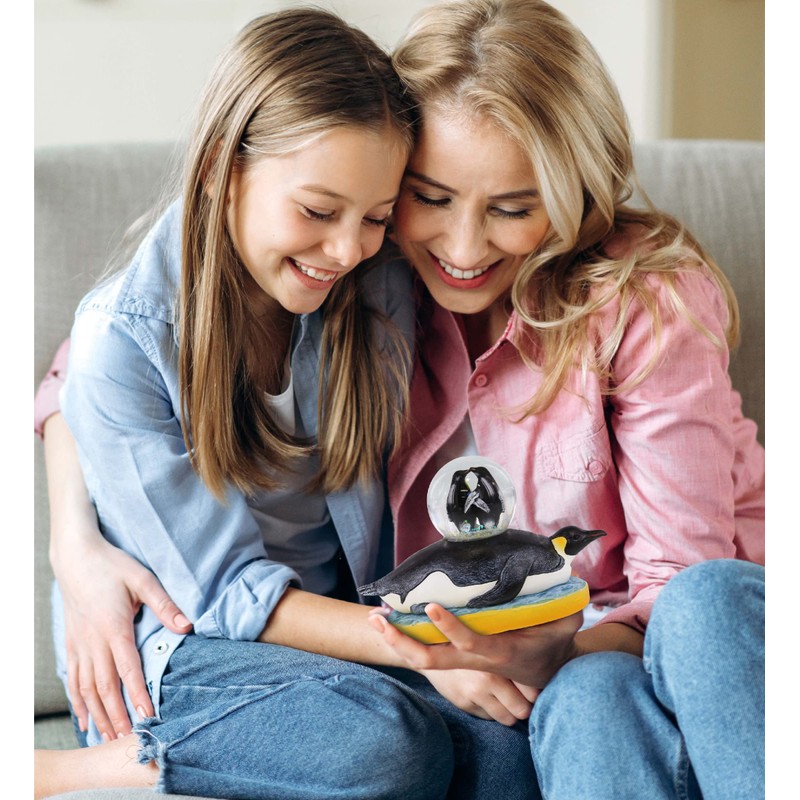 - HIGH-QUALITY PENGUIN SNOW GLOBE - The Penguin snow globe glitter dome is made with strong and sturdy materials so you can shake the snowglobe every time you want to see the sparkly glitter fall. The clear liquid dome filled with colorful glitter is made with glass and the realistic hand-painted figurines are made with high-quality resin materials. Preserve the beauty of this wild animal snow globe by wiping it with a damp cloth.