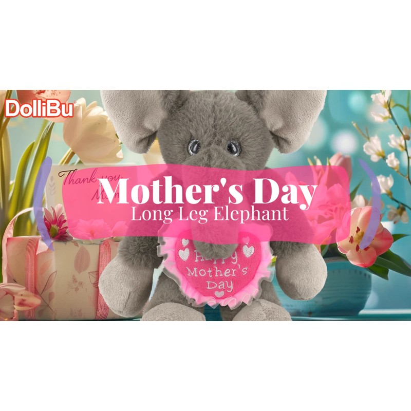 DolliBu Happy Mother's Day Super Soft Plush Long Leg Elephant - Cute Stuffed Animal Present With Pink Heart Message for Best Mommy, Grandma, Wife, Daughter - Safari Life Plush Toy Gift - 10.5 Inch \n \nYour browser does not support the video tag. \n \n \n \n \n THE ELEPHANT STUFFED ANIMAL WITH A HEART COMES WITH UNIQUE DESIGN YOU WILL LOVE – Super Soft Long Leg Elephant Plush comes customized with a beautiful "Happy Mother's Day" message embroidered on a Pink Plush Heart. DolliBu's Mother's Day Plush Long Leg Elephant makes a sweet present for all moms who love stuffed toys and adorable safari animals. A must-have wild life animal plush gift to celebrate and make your mom feel special on Mother's Day. \n THE ELEPHANT PLUSH TOY IS FOR ANYONE WHO LOVES STUFFED ANIMALS - The cute novelty Long Leg Elephant plush toy designed with soft body is a sweet plush gift for your loved one. Let your mom, daughter, girlfriend, wife, or grandma know that you love them by giving them an adorable plush animal with an embroidered pink pillow heart wishing them a Happy Mother's Day. It is also a fun addition to their room to remind them that you love them. \n INCLUDED WITH THE PURCHASE - Includes 1 DolliBu Long Leg Elephant stuffed heart toy with hook and loop tape with a sentimental message. The Elephant plush animal comes with a pink stuffed heart attached featuring a beautifully embroidered "Happy Mother's Day" message. Decorated with a body that is made of soft fabric that makes the plush perfect for cuddles and snuggles. This cute Long Leg Elephant plush toy measures 4LX4WX10.5H inches long. \n HIGH-QUALITY TEDDY BEAR WITH HEART - Long Leg Elephant doll is a toy plush made from premium quality polyester, stuffed with soft fillings, and covered with gray fluffy plush. A snuggly and cozy stuffed animal Elephant crafted with durable materials, designed to deliver a Happy Mother's Day message to your loved one in an adorable way. To maintain the cleanliness of the cute Elephant plush, surface wash with cold water and allow to air dry. \n IDEAL USE FOR ELEPHANT MOTHER'S DAY STUFFED ANIMAL - Surprise your loved one with a sentimental plush this Mother's Day to make their day extra special. Gifting Long Leg Elephant plush with a "Happy Mother's Day" message is a cute way to express your love. Surprise your mom with the perfect gift! Super soft and adorable plush will make the perfect addition to flowers, gift box or pairing it with a dozen roses, chocolates or bottle of champagne. \n \nSurprise your loved one with a sentimental plush this Mother's Day to make their day extra special. Gifting Long Leg Elephant plush with a "Happy Mother's Day" message is a cute way to express your love. Super soft and adorable teddy bear will make the perfect addition Mother's Day flowers, gift box or pairing it with a dozen roses, chocolates or bottle of champagne. Super Soft Long Leg Elephant Plush comes customized with a beautiful "Happy Mother's Day" message embroidered on a Pink Plush Heart. DolliBu's Mother's Day Plush Long Leg Elephant makes a sweet present for all moms who love stuffed toys and adorable safari animals. A must-have wild life animal plush gift to celebrate and make your mom feel special on Mother's Day. The realistic novelty Long Leg Elephant plush toy designed with soft antlers, long hands, and long legs is a sweet plush gift for your loved ones. Let your mom, step mom, girlfriend, wife, or grandma know that you love them by giving them an adorable plush animal with a mini embroidered pink pillow heart wishing them a Happy Mother's Day. It is easy to coordinate with other gifts and sweets. Includes 1 DolliBu Long Leg Elephant stuffed heart toy with hook and loop tape measuring about 4LX4WX10.5H inches, with a sentimental message. The Long Leg Elephant plush animal comes with a pink stuffed heart attached featuring a beautifully embroidered "Happy Mother's Day" message. Long Leg Elephant doll is a cute toy plush made from premium quality polyester and stuffed with soft fillings. Covered with gray fluffy plush. A snuggly and cozy stuffed animal Long Leg Elephant crafted with durable materials, designed to deliver a "Happy Mother's Day" message to your loved ones in an adorable way. To maintain the cleanliness of the cute Elephant plush, surface wash with cold water and allow to air dry.Item Specifics