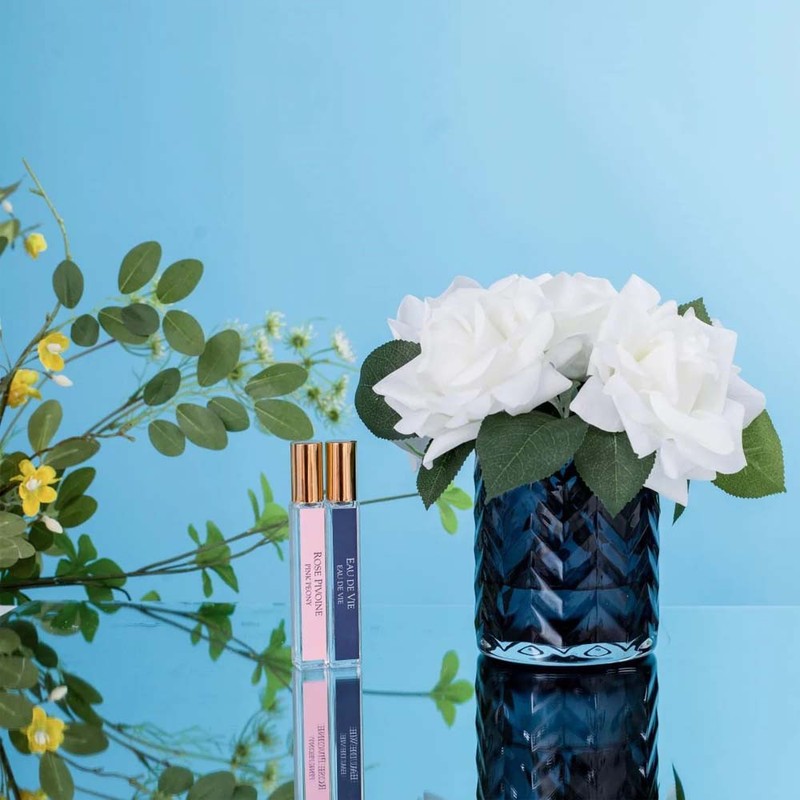 Navy Herringbone with White Roses is one of the fragrances in the Cote Noire range that takes inspiration from the idyllic Charente countryside with each scent devoted to capturing a portrait of the traditional French lifestyle. Inspired by the provincial village life, a range of full-bodied fragrances have been created combining patisserie favorites, fragrant teas, succulent fruits and enticing florals. The flowers are skillfully hand-crafted that uses a special natural coating to provide every petal a life-like touch and appearance, as each petal is also infused with fine fragrance.