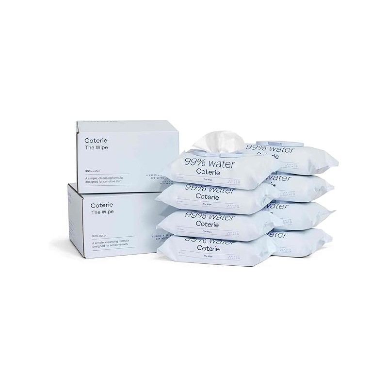 Coterie Baby Wipes for Sensitive Skin, Plant-Based and Plastic-Free Fibers, 99% Water, Hypoallergenic, pH Balanced, Unscented, Clean and Gentle Baby Essentials, 8 Pack, 448 Count