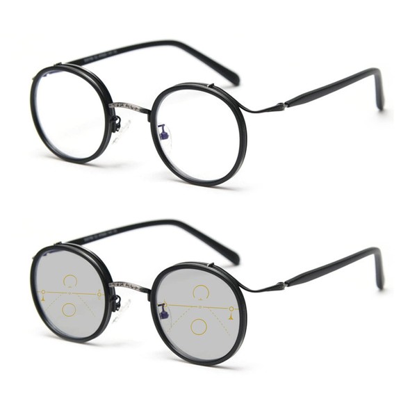 COTIA Reading Glasses Transition Photochromic Progressive Multifocus Reader for Men/Women Classic Round Eyewear (black, 2, multiplier_x)