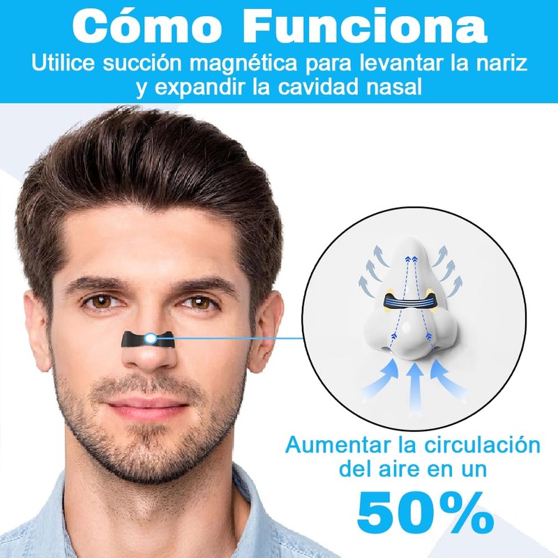 - 【Alivia la Congestión Nasal y los Ronquidos】 Este kit incluye un dilatador nasal magnético y tiras nasales, que pueden expandir los conductos nasales a través de la atracción magnética del dilatador y las tiras nasales, mejorar el flujo de aire, aumentar la inhalación de aire, reducir los ronquidos y ayudarlo a respirar mejor.