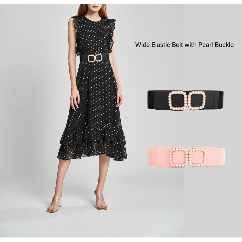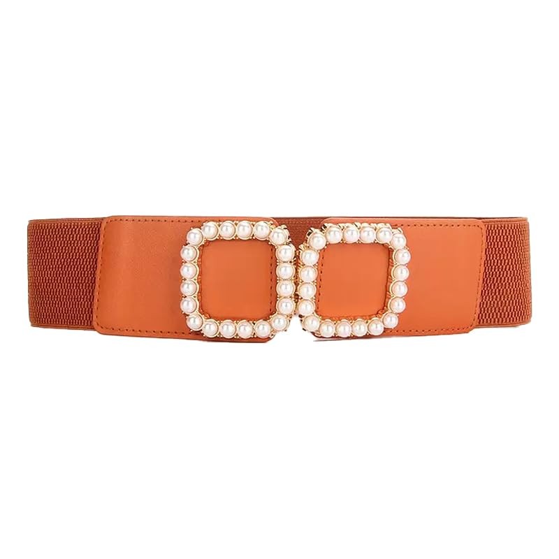 - Versatile Design: This wide elastic waist belt features a stylish pearl square buckle, perfect for adding a touch of elegance to any outfit.