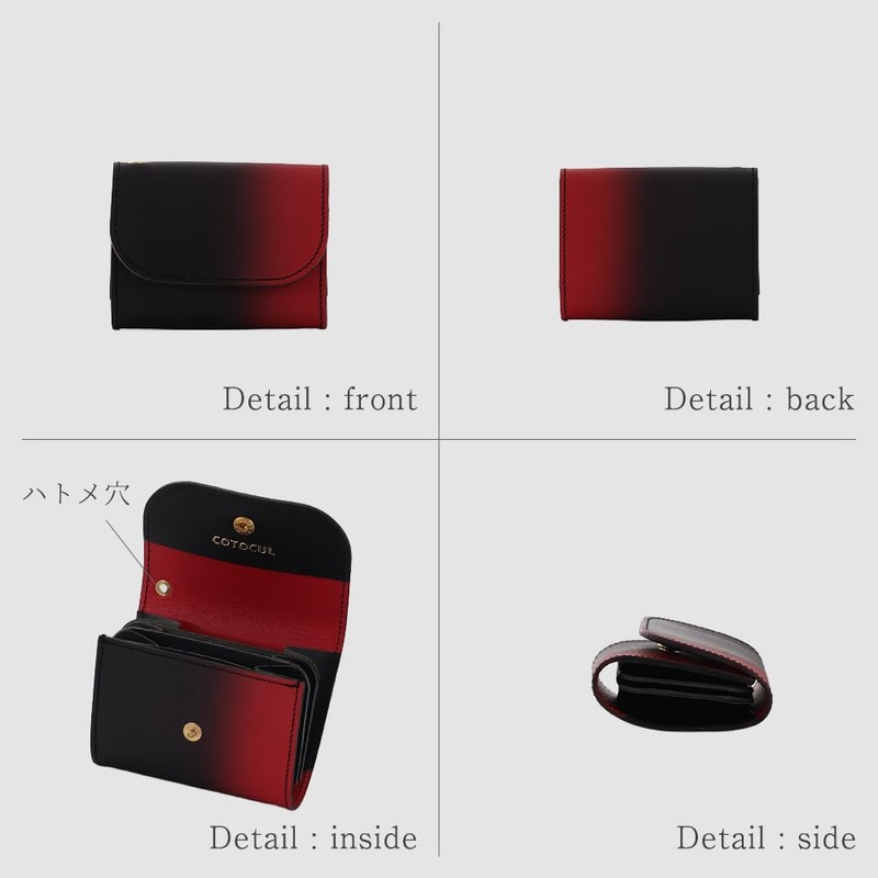 COTOCUL Mini Wallet, Genuine Leather, Blurred Dye, Prevents Bills from Breaking, Bifold Small Wallet, Women's, Men's (Red Lacquer), Red lacquer