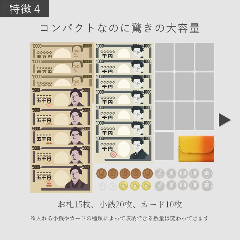 - Capacity: Bills (approx. 25 cards), Coins (approx. 25 cards), Cards (approx. 10 cards) *Capacity may vary depending on the condition of bills, type of coins, and thickness of cards
