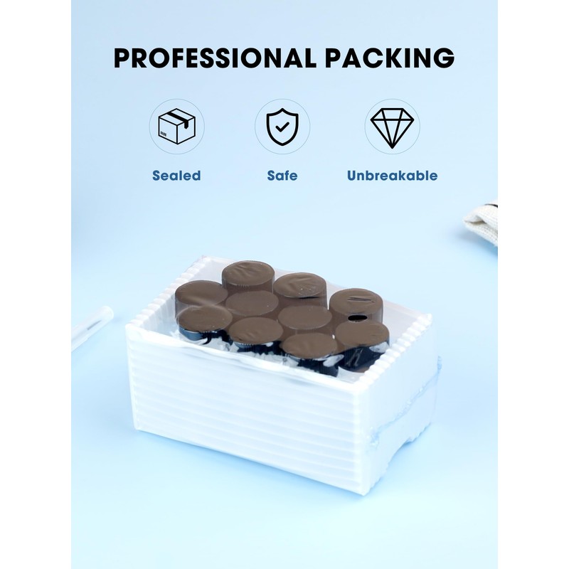 - Lecksicheres Design: Jede Fläschchen ist mit einem Plastikflaschenstopfen und einer Dichtungsdichtung ausgestattet,die fest in einer spiralförmigen Aluminiumkappe versiegelt ist,um Leckagen zu verhindern.