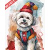 Coton de Tulear in a Clown Costume Dog Watercolor Painting Print 8x10