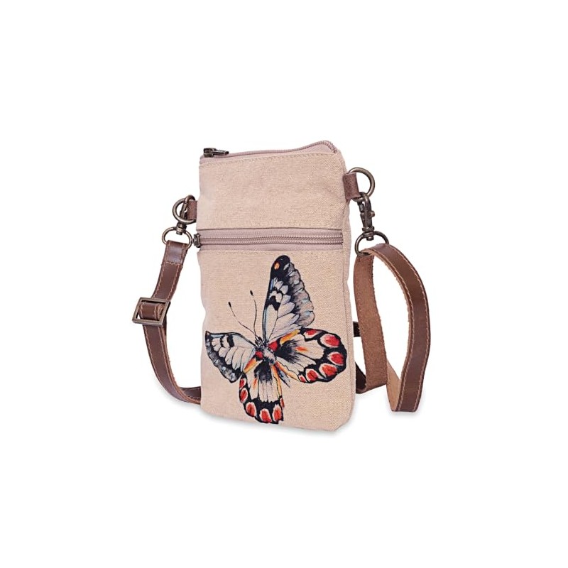 COTT N CURLS Exotic Butterfly Cell Phone Purse - 8" x 5.5" Crossbody Bag, Handcrafted in Cotton Canvas and Adjustable Leather Straps, Durable Cross Body Purse