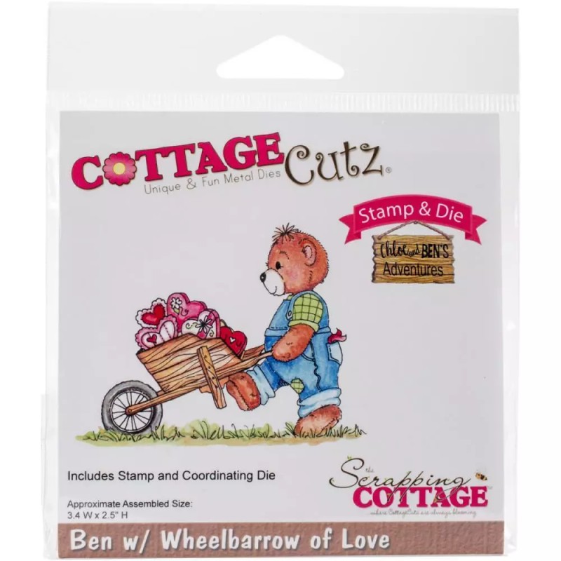 Cottage Cutz Acrylic Stamp BEN WITH WHEELBARROW OF LOVE