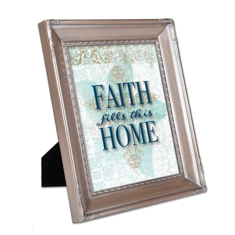 Cottage Garden Faith Fills This Home Brushed Silver Rope Trim 8 x 10 Table Top and Wall Photo Frame