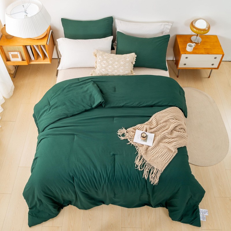 COTTEBED Ultra-Soft Polycotton Bedding Comforter Set Twin XL/Twin Size - Hunter Forest Green Cozy Lightweight Solid Bed Quilt Blanket for Kid Teens School College Dorm All Season Use - Emerald Green