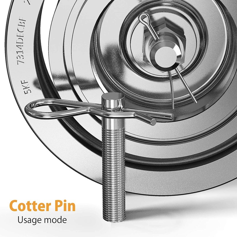- [Easy to Use] When the split pin is inserted into the hole, the bulb shaped head stops the movement of the pin, bending the open end to fix it. Hairpin style design allows you to quickly and securely hold bolts and pins