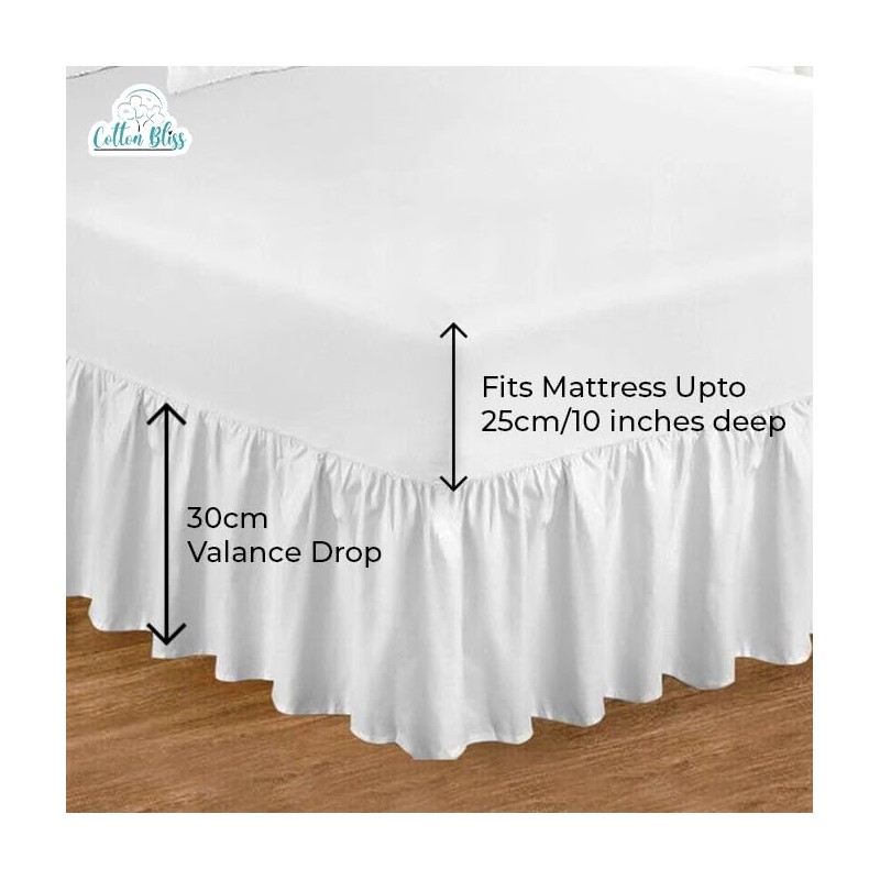 COTTON BLISS Single Valance Sheet - Soft Breathable Material Bed Skirts & Valances with Deep Frilled Coverage - Easy Care Bed Base Cover- 90 x 190 cm with 25cm Depth + 30cm Frill (White)