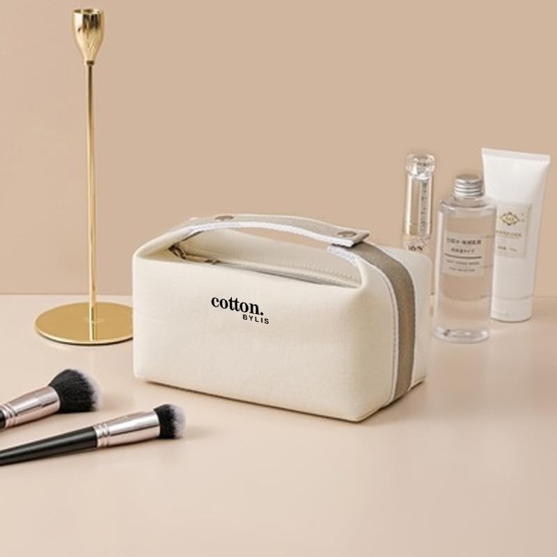 Cotton.BYLIS Cosmetic Bag, Canvas Makeup Pouch, Light Beige Travel Bag