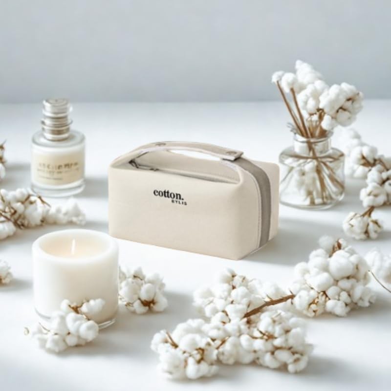- MATERIAL: Made from durable natural cotton canvas fabric with a textured herringbone pattern, perfect for daily cosmetic storage