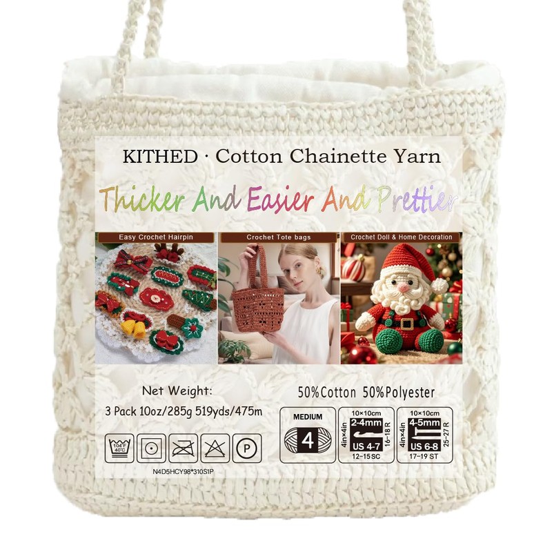 - Versatile:This cotton chainette yarn for all our craft projects like Handbags,Dishcloths,Tea towels,Hairpin,Doll,and other crafted patterns.It's also a great yarn for kids and crafts makers.
