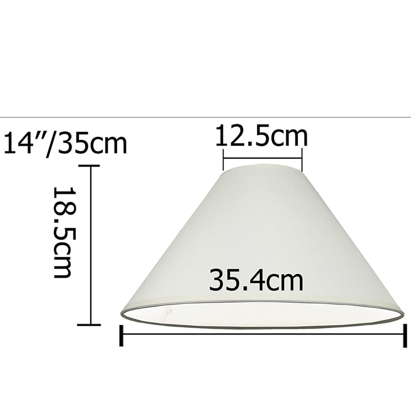 - Dual shade ring fits both ceiling pendants and table/floor lamps 14 inch (35cm) diameter, 18.5cm height, 12.5cm top diameter for versatile use