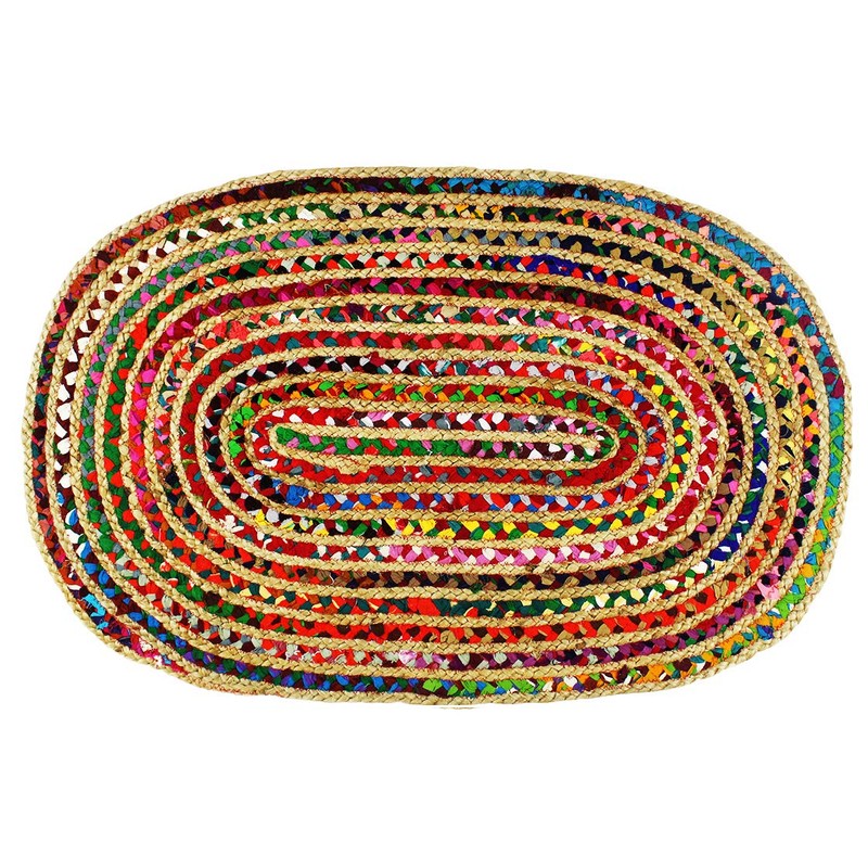 - CONSTRUCTION: Hand made from 100 Percent Natural jute fibers and multi-color vibrant recycled cotton rags - braided together. Each rug consist of a unique color blend which may differ from the image shown