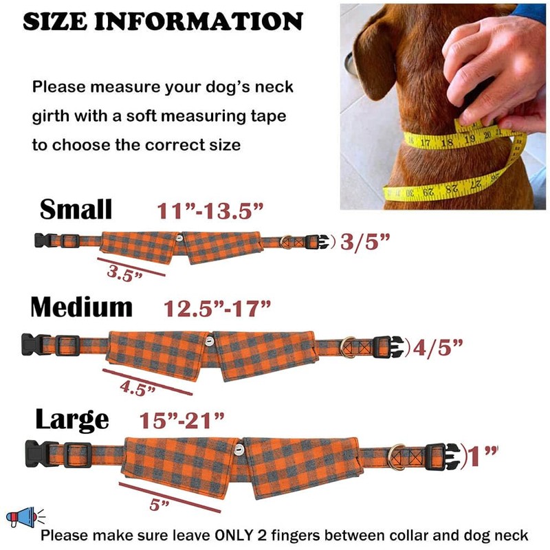 - Adjustable Size:The collar does not stretch itself, Please measure the pet’s neck girth and make sure leave only 38 fingers between collar and dog neck before placing order, this is essential for the dog. Please refer to our size chart, choose the size that fits your pets