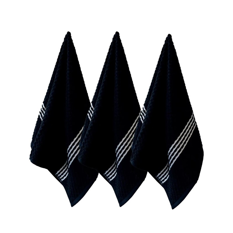 - BLACK KITCHEN TOWELS – PERFECT FOR HIDING STAINS: The rich black color adds a modern touch to your kitchen, making them ideal as cute kitchen towels. Their dark shade hides stains and spills, keeping them fresh and clean even with frequent use.