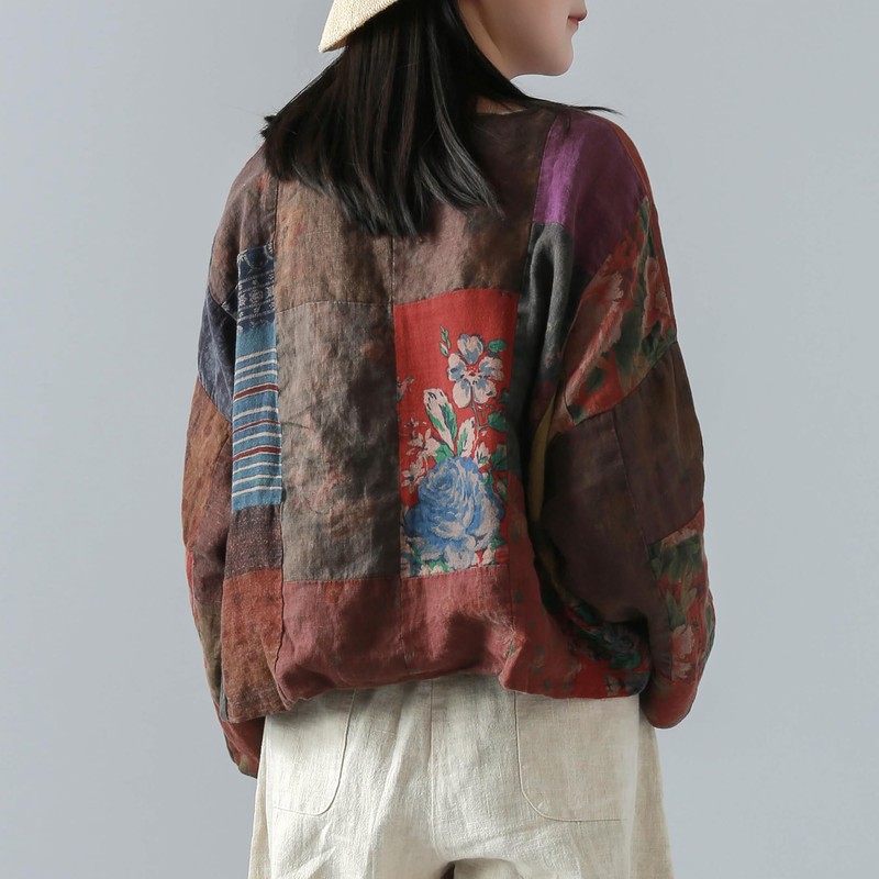 Cotton Linen Blend Spring Patchwork Short Jacket for Women - Lightweight Casual Outerwear (US, Alpha, One Size, Regular, Regular, floral)