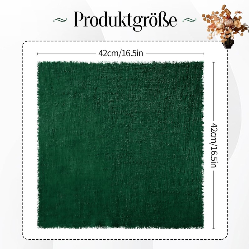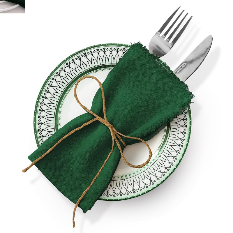 Cotton Linen Napkin Set of 6 Square Napkin Wedding Party Western Table Decoration Cotton Fabric Napkin with Raw Edge【Dark Green+ 42*42cm Raw Edge】