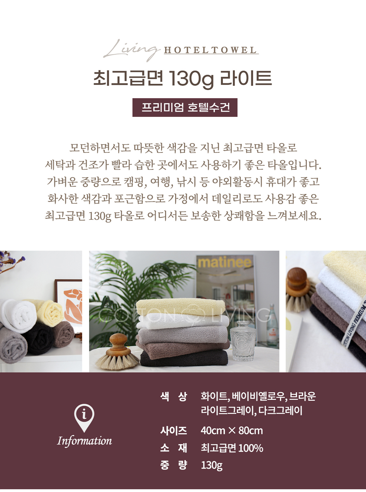 Cotton Living 30 count 130g hotel towels 10 sheets, Living 30 count 130g baby yellow 10 sheets / 코튼리빙 30수 130g 호텔수건 10장, 리빙 30수 130G 베이비옐로우 10장