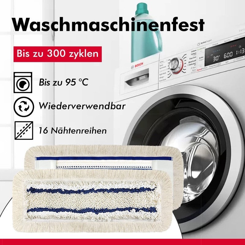 - EXCELLENT QUALITY: Each mop cover is made from a high quality material composition, 50% cotton and 50% polyester with the utmost care for an extra long life. Due to the high total material resistance, it is washable at temperatures up to 95 °C.