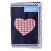 Cotton Passport Holder - Fabric Passport Cover 19 x 14 cm, Dark Blue with Checked Heart & Trim, Washable - Protective Cover for Passport, Ideal for Women & Travel
