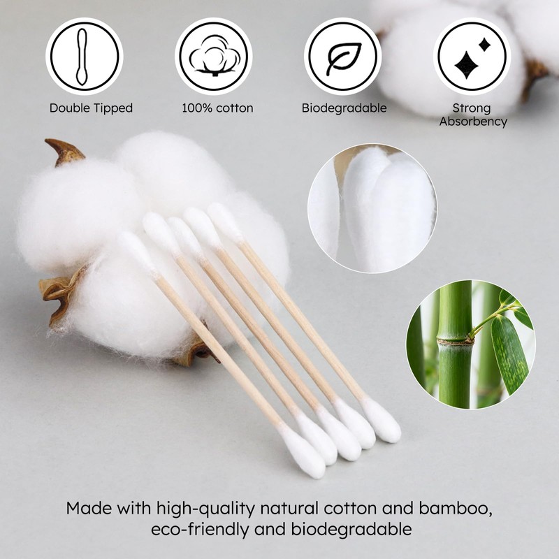 - High-quality materials: Individually wrapped cotton swabs are made from soft cotton and premium bamboo. The swabs have strong absorbency and do not shed fibers. The bamboo material is durable and resistant. The materials are also eco-friendly, ensuring safe use.
