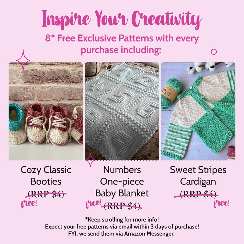 - DK Weight & Gauge: Lightweight DK yarn with 13 WPI. 23 sts x 30 rows (knit) or 18 sts x 22 rows (crochet) = 4". Each skein: 142 yds/50g.