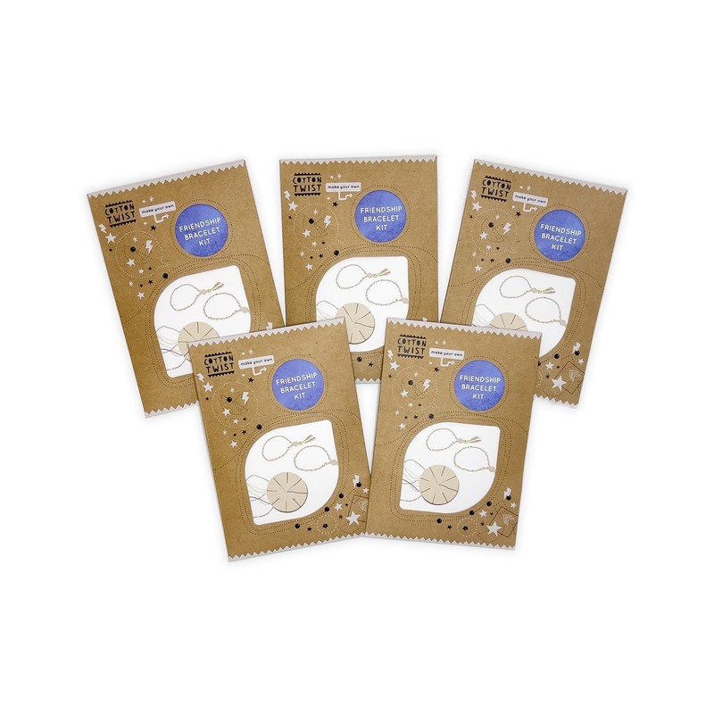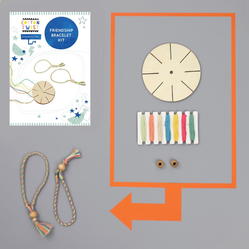 Perfect for five years & upwards, this sustainable kit would be perfect for a birthday party. Cotton Twist craft activities are often gifted as party bags, birthday presents, stocking fillers or rainy day activities. Children love to create, & this friendship bracelet is fun to make & sparks imaginative play. Children can construct two friendship bracelets using this colourful craft kit. This pack contains everything you need to create two colourful bracelets - one each for the child and their best friend. Use the wooden weaving tool to make your piece then secure with the beads provided.