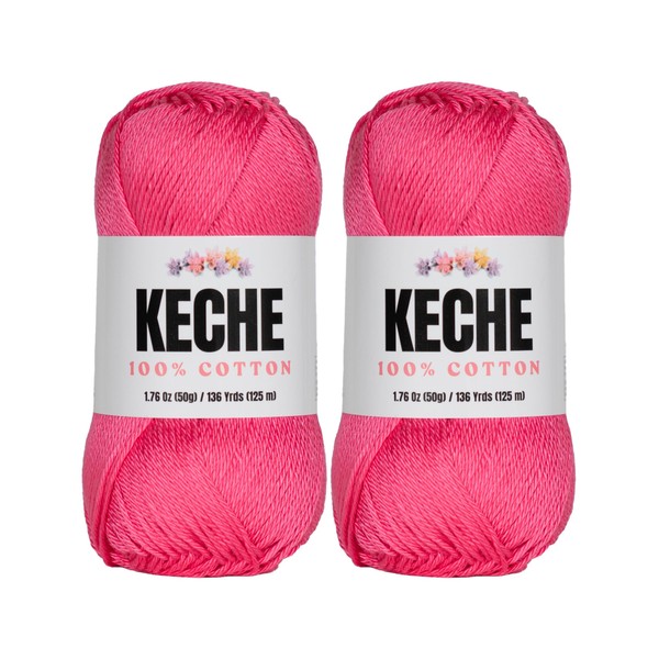 Cotton Yarn - 100% Cotton Yarn for Crocheting and Knitting, Mercerized Cotton Amigurumi Yarn Fine-Sport 2 1.76 oz (50g) / 136 Yrds (125 m) 2 Skeins (4907 - HOT Pink)