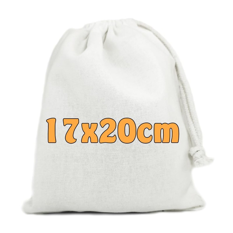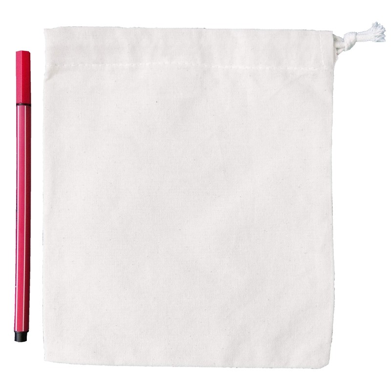 - These fabric bags (approx. 17 x 20 cm) made from 100% cotton in natural colour are extremely versatile. They are perfect for crafting, painting and stylish gift packaging. In addition, they are ideal for safely storing toys, puzzle pieces, jewellery, cosmetics, hygiene items and other small items. They are also practical as a lunch bag for nursery, school or office.