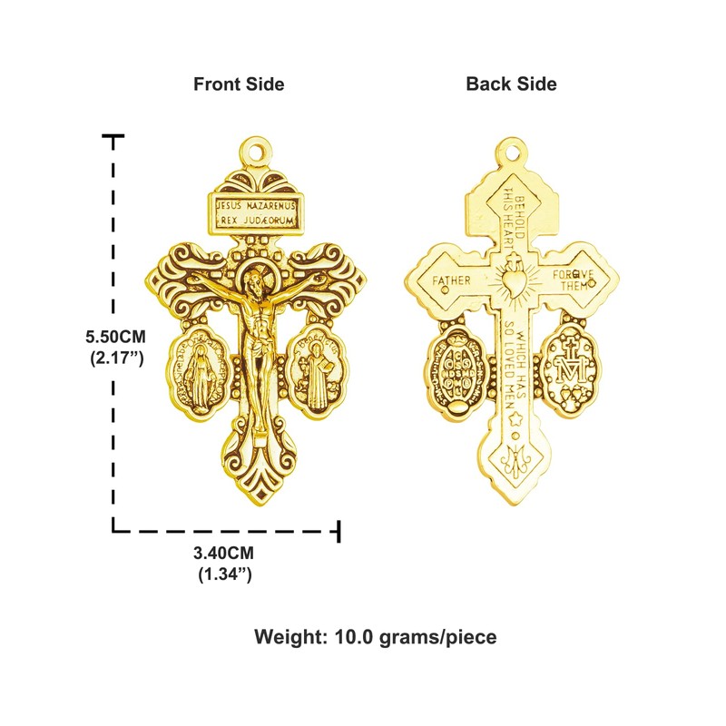 - Ideal Size for Versatile Use: each crucifix for rosary making measures about 1.34x 2.17 inches/ 3.4 x 5.5 cm, weight is 10g/pc, an ideal size that makes them versatile enough for use with larger rosary beads as a pendant or a catholic cross necklace and various other handmade projects
