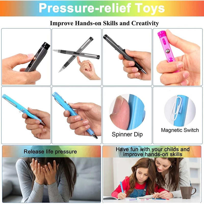 • 【インスピレーションクリエイティビティ】ボールペン文房具のフィジェットのおもちゃは2インワンのデザインを持っています- ストレスを軽減するフィジェットの解消おもちゃだけでなく、クールな多機能ペンでもできます。あなたが望むように変え、想像力と創造性を使う.