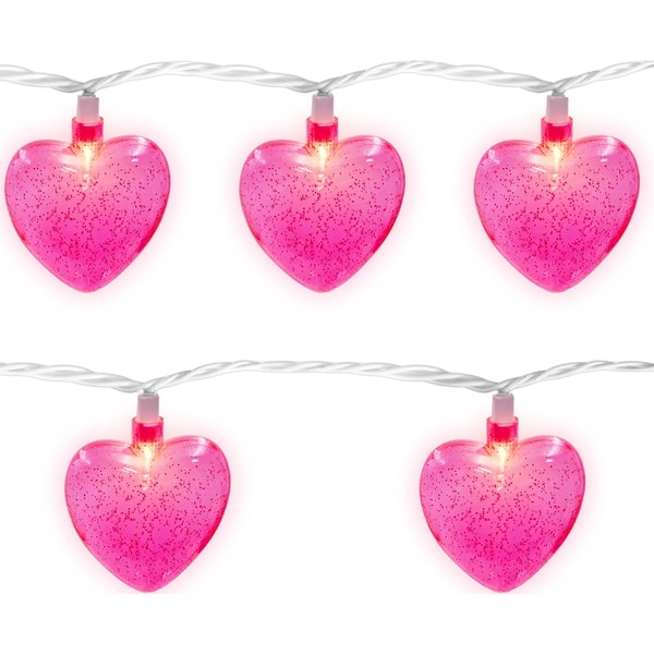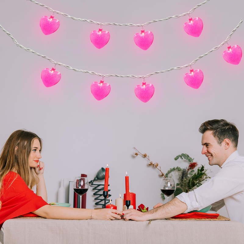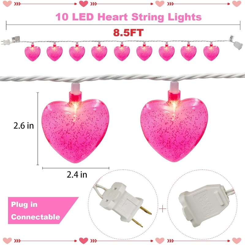 - ❤️Valentines Day Decor Light-8.5Ft Valentines Pink Heart String Lights with 10 Pink Heart (LED bulbs), Each bulbs 0.84W, Pink Heart Lights glow warm and pleasant atmosphere, relaxing ambience feeling to your party room, livingroon, classroom, office decor in Valentines Day.