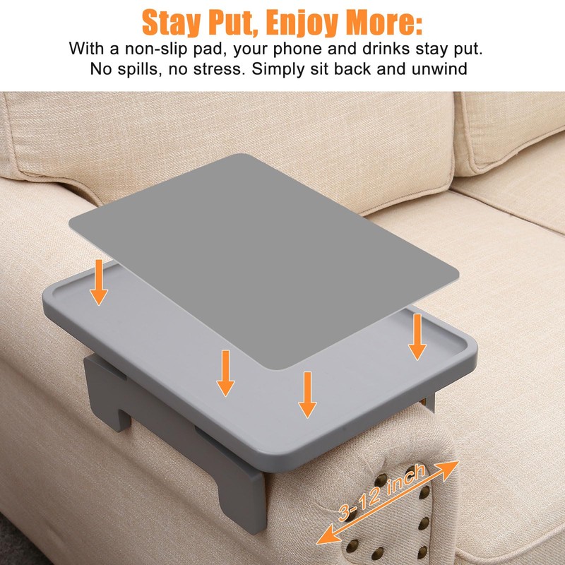 - Easy-To-Use Couch Tray: The depth of the chair arm table is well thought out to accommodate your necessities, such as cell phones, earplugs, remote controls,or snacks.Clip-on clip tray side table is a lap trays for eating on couch.