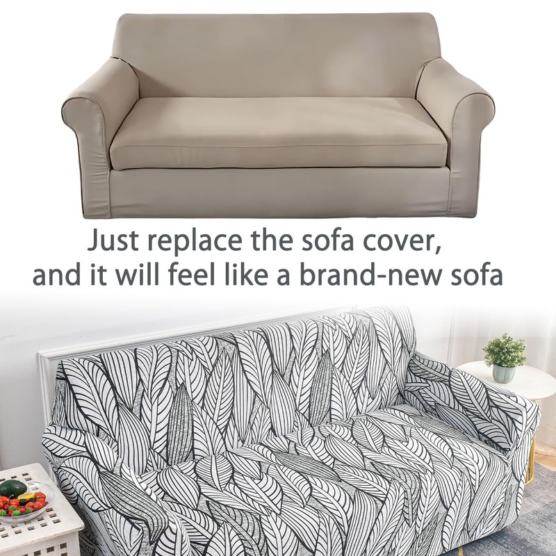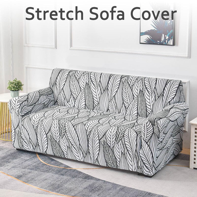 Couch Covers for Living Room Stretch Printed Furniture Sofa Slipcovers Patterned Washable Sofa Protector Large Size(White Leaf,3 Seater/Large 2 Seater)