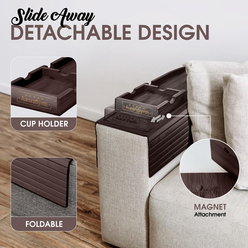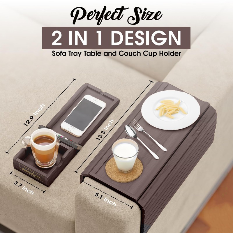 - 𝐒𝐭𝐮𝐫𝐝𝐲 & 𝐃𝐮𝐫𝐚𝐛𝐥𝐞 𝐂𝐨𝐧𝐬𝐭𝐫𝐮𝐜𝐭𝐢𝐨𝐧: Aurora Synth universal couch tray Crafted from high-quality bamboo materials, this couch arm tray for couch is built to last. Couch cupholder tray robust construction ensures stability and durability, providing a reliable solution for keeping your drinks steady as you relax and entertain guests. Couch drink holder adjustable design ensures a perfect fit, allowing you to enjoy your favorite drinks without any hassle.