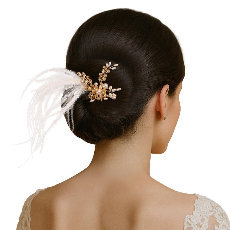 - Design: This exquisite comb combines sparkling crystals, lustrous pearls (both round and teardrop shapes), and airy feathers to create dimensional elegance. Perfectly balanced between vintage charm and modern glamour, this hair accessory elevates any bridal look with its graceful silhouette