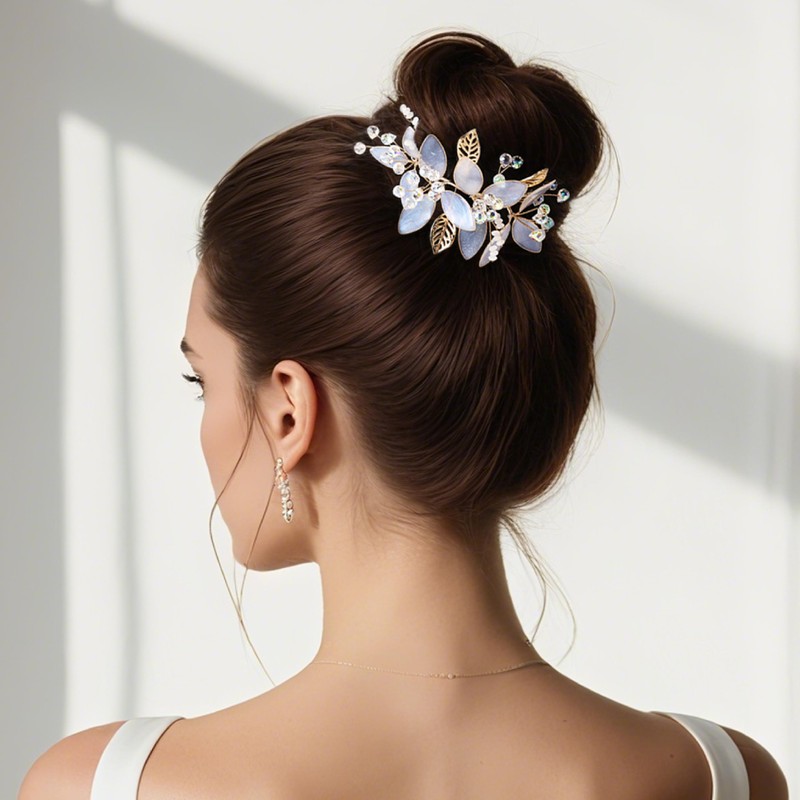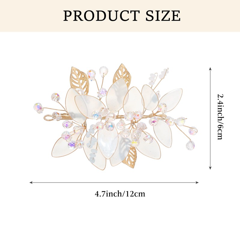 - Elegant Floral Design: A romantic combination of shimmering crystals, delicate petals, and gold leaf accents that adds timeless beauty to any hairstyle
