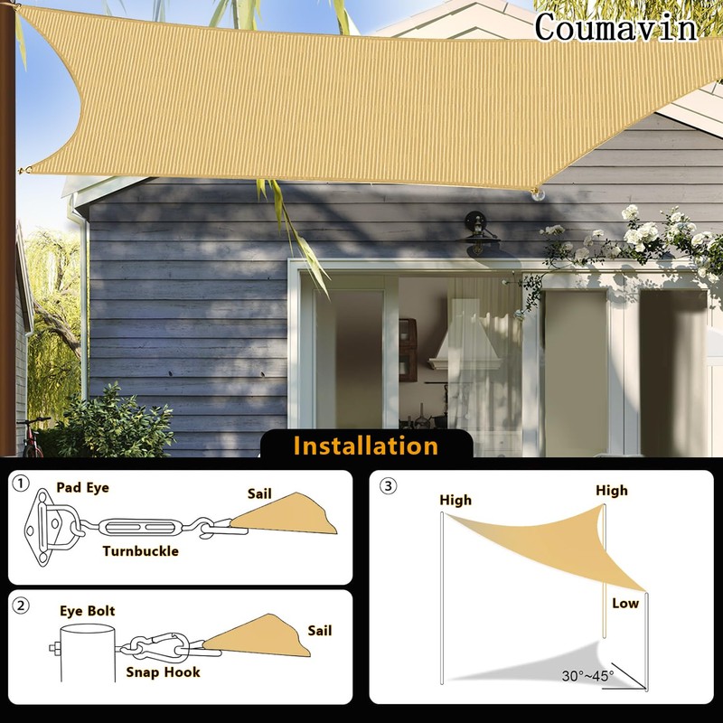 - Sun Protection & UV Blockage: Our rectangular shade sail is crafted from high-density polyethylene (HDPE) fabric that blocks up to 95% of harmful UV rays, offering you a cool and safe outdoor experience. Perfect for patios, backyards, or garden spaces.