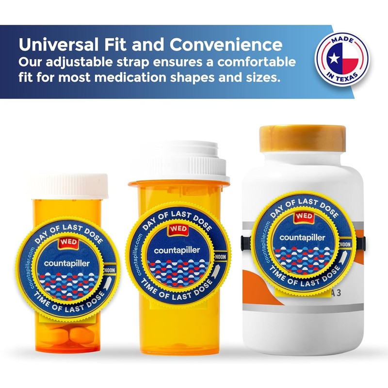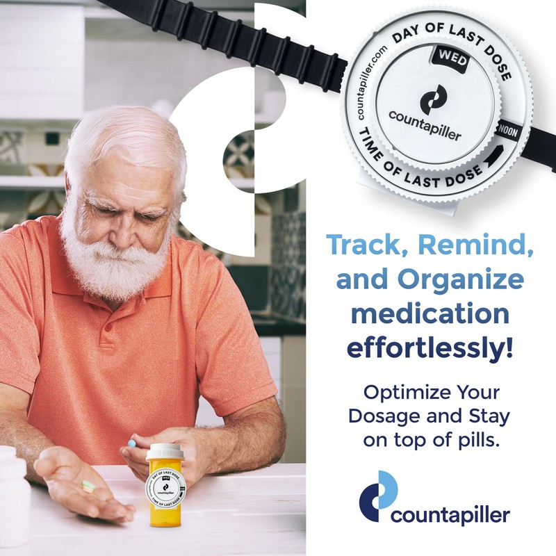 Introducing Countapiller, a safe, effective, and affordable solution for managing medication throughout the day. Countapiller is the revolutionary product that emerged from a heartfelt story involving an elderly patient. It all started when this patient accidentally took her sleeping pill twice, leading to a frightening situation that prompted her family to rush her to the emergency room, fearing she might have undergone a stroke. Our product is driven by the desire to prevent such misfortunes from occurring in the future. Countapiller’s teams of experts have crafted the all-in-one solution for medication management without complicated technology. The secret is with our universal plastic silicone strap that allows for easy mounting to virtually any bottle size, providing a secure fit and adaptability. Users can ensure the safety of their loved ones without breaking the bank. Our affordable and user-friendly product is designed to empower individuals, their families, and caregivers in managing medication schedules with ease and confidence. Say goodbye to confusion and fear with Countapiller's intuitive design. This innovative solution provides a visual reminder system, enabling users to easily track their medication intake without the risk of double-dosing. Its simplicity is the key to its success, eliminating the need for complex technology that can often be overwhelming. At Countapiller, we understand the importance of peace of mind. That's why our product offers a reliable and accessible way to maintain medication routines, reducing the likelihood of dangerous situations like accidental overdoses or missed doses. Don't let a stressful incident become a recurring nightmare. Choose Countapiller, the reliable, affordable, and user-friendly solution that brings peace of mind to both you and your loved ones, by simplifying medication management and promoting responsible dosing.