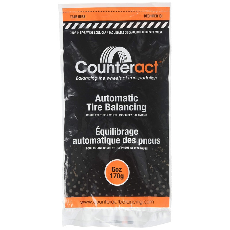 Counteract Balancing Beads is the only tire and complete wheel assembly balancing product on the market proven to improve fuel economy in two separate SAE-J1321, TMC RP-1102 Type II tests. Counteract Balancing Beads are manufactured as a tempered glass bead that is placed inside a tire, or injected through the valve stem, allowing for a complete tire & wheel assembly balance without the use of external wheel weights. Counteract extends tire life, improves fuel economy, balances the complete wheel assembly, decreases vibration and driver fatigue, last for the life of the tire, and is environmentally friendly. The Kits include everything you need to install the product at home via the Valve Stem. If you are having new tires mounted, every bag of Counteract 4oz & up is a Drop In Bag system. Simply open your Counteract Balancing Beads bag, and place the inner clear bag containing Counteract inside the tire cavity as it is being mounted. Once the tire is sealed and mounted to the vehicle, the bag will break on its own when the vehicle starts to move.