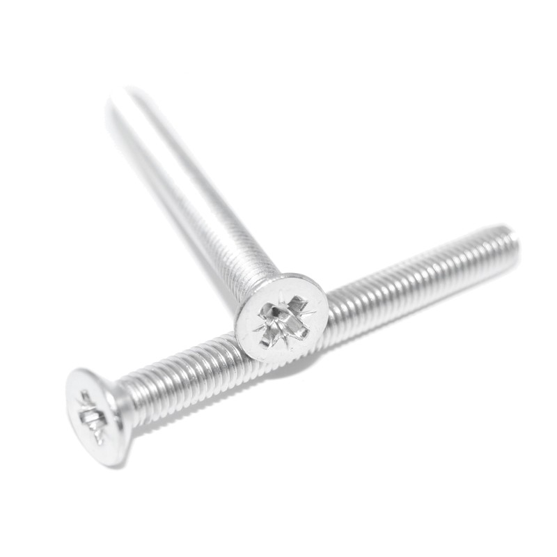 Countersunk screws according to DIN 965 with Phillips head (also known as Phillips head) are a common type of screw used in various applications. These screws are characterised by their tapered head and cross slot.