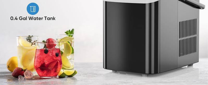 - 【FAST ICE MAKING】The ice maker can make 9 bullet-shaped ice cubes in just 6 minutes. Fill 1.5L of water into the water tank, maximum ice capacity can reach 26.5 pounds in 24 hours. Say goodbye to long waiting times and enjoy a constant supply of ice whenever you need it. It has a transparent window, so you can watch the ice being made.