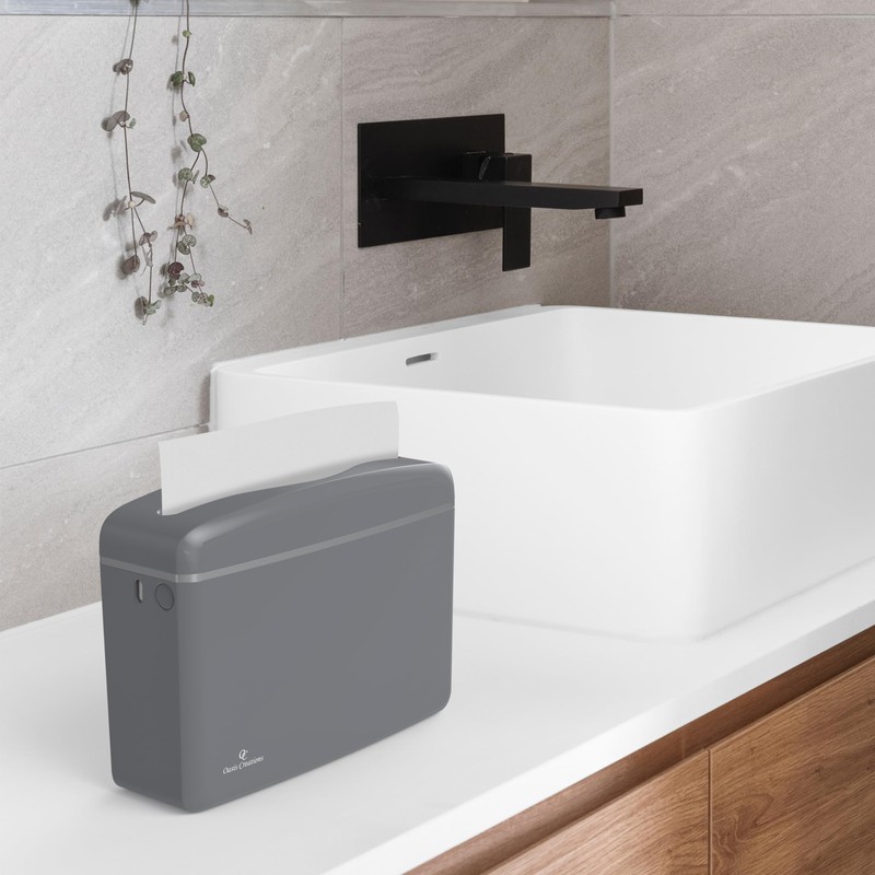 Countertop Multifold Hand Paper Towel Dispenser by Oasis Creations, Single Sheet Dispensing – Glossy Gray